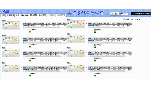 真空泵磨合檢測(cè):可讓真空泵抽到設(shè)定時(shí)間或設(shè)定的真空度,放氣到設(shè)定的下限,再抽到設(shè)定的真空度,檢測(cè)最大電流值,恢復(fù)到設(shè)定值的時(shí)間